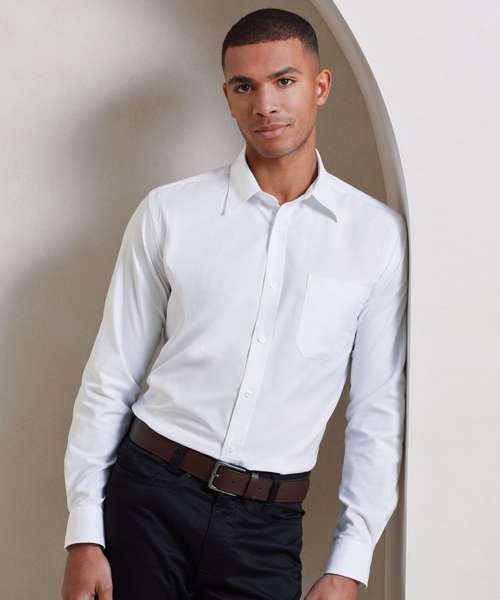 Premier’s long sleeved men's Signature Oxford comes in a cotton rich, Oxford weave fabric. Its semi-fitted styling and back pleats give a tailored look, presenting a professional front for your business. Classic features include buttoned down collar and left chest pocket with the overall classic Oxford weave appearance.