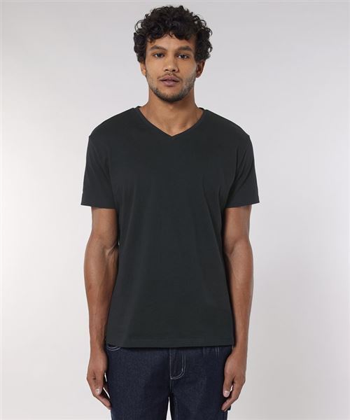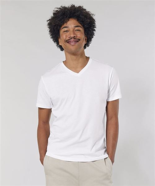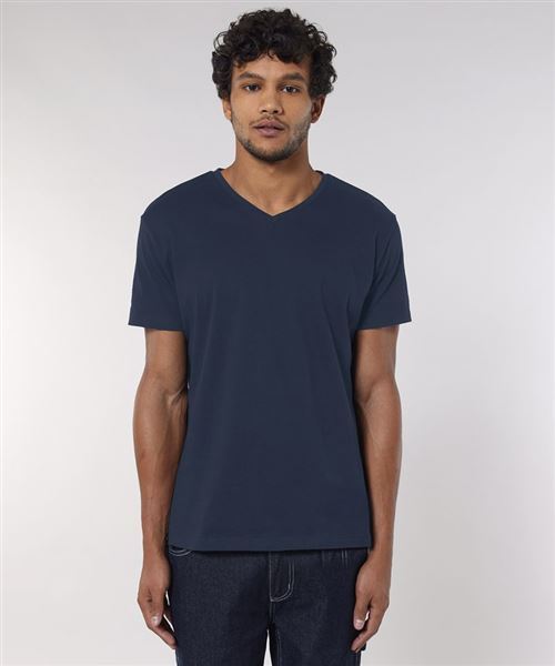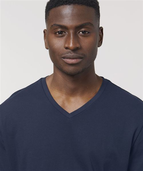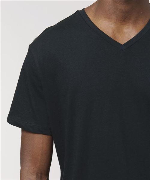 The men's v-neck t-shirt in 120gsm organic cotton features refined proportions and is designed with the perfect neckline and with a self-fabric construction.