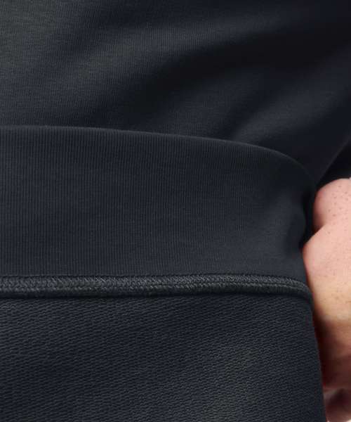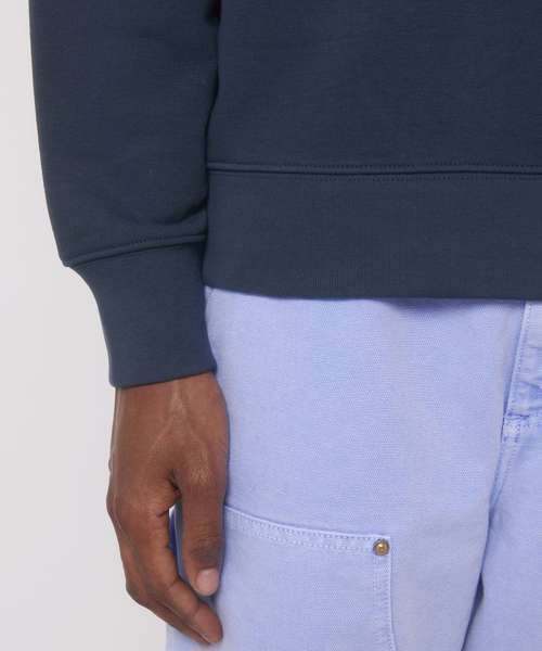 Unisex medium fit crew neck sweatshirt. Set-in sleeve. 1x1 rib at neck collar, sleeve hem and bottom hem. Inside herringbone back neck tape. Self-fabric half-moon at back neck. Single-needle topstitch at neck collar. Armhole, sleeve hem and bottom hem with twin-needle topstitch.