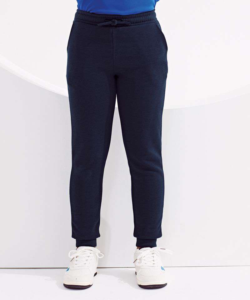 Made from soft cotton and recycled polyester these kid’s slim fit joggers are perfect for dance classes, P.E lessons, sports clubs or as casual everyday wear. Comfortable to wear, these joggers have an elasticated waistband with self-coloured ties and ribbed cuffs.
